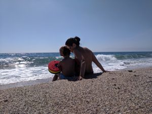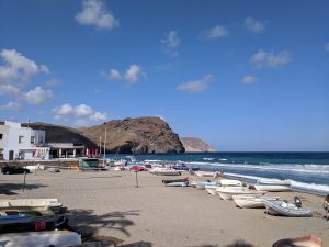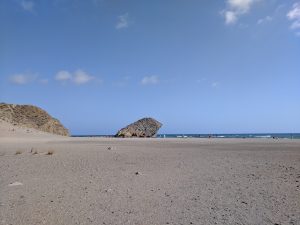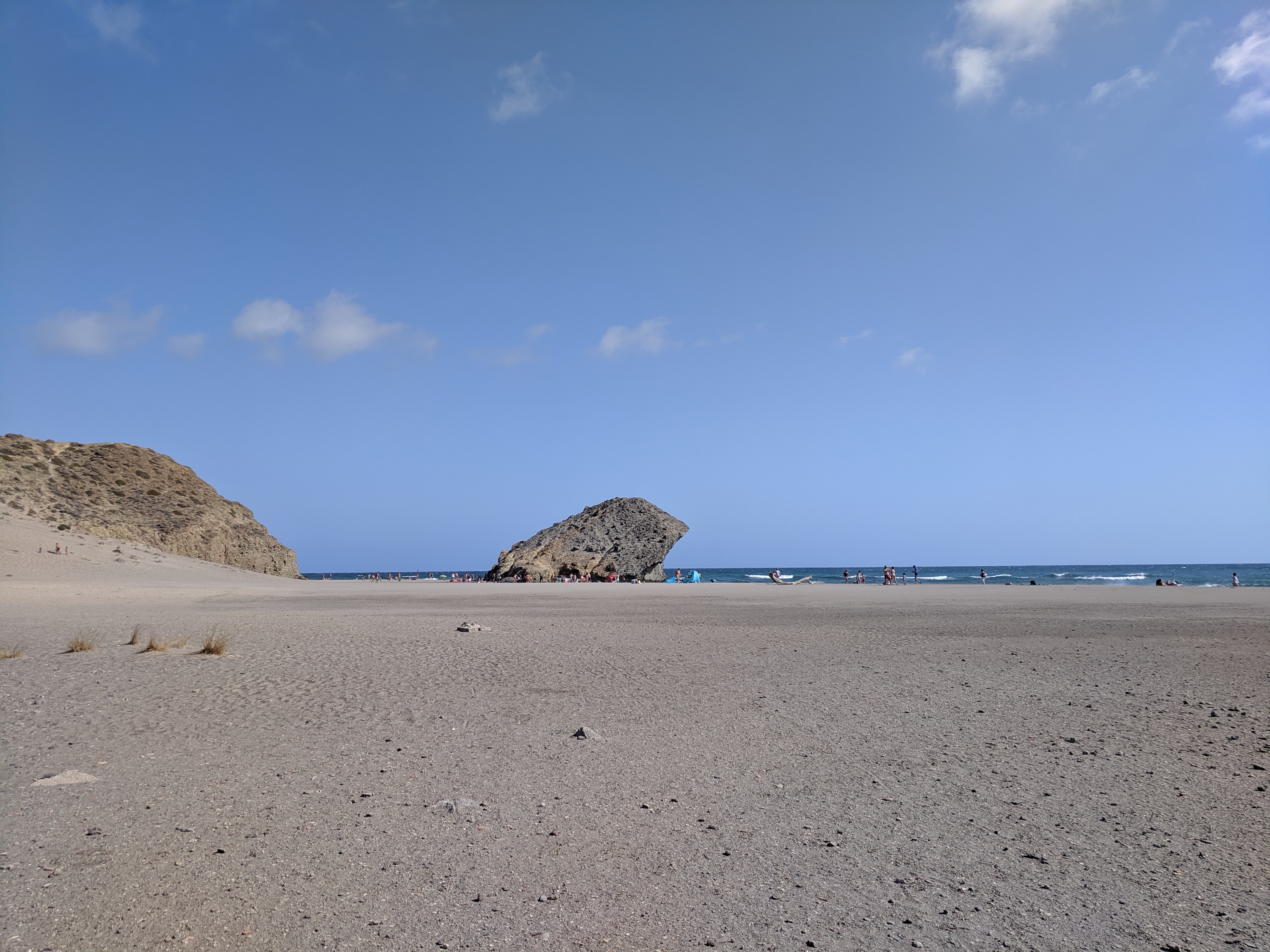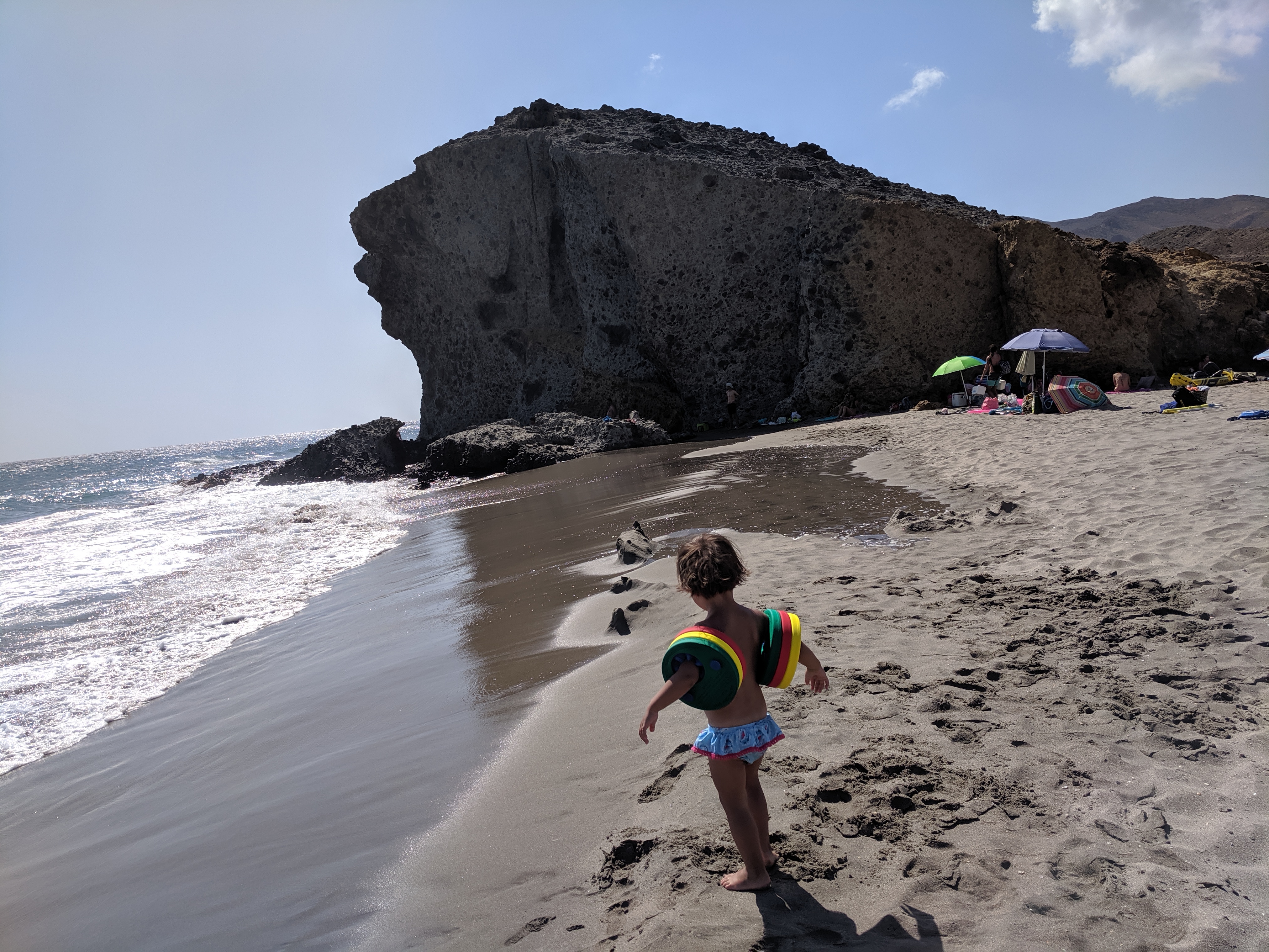 El segundo día, que compartimos con amigos, fuimos a la Playa de Aguamarga. Nos gustó muchísimo. Había gente pero se estaba muy bien y unas vistas…. Es una playa urbana con todos los servicios. De hecho comimos en el restaurante que teníamos justo detrás. Un lujazo dar 4 pasos, comer y volver a la playa a hacer la siesta bajo la sombrilla… bueno eso si te dejan, que no fue mi caso… se durmieron todos menos mi hija… 🤦🏻♀️